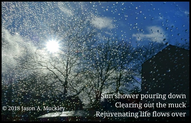 September 2, 2018 Jason A. Muckley Sun Shower #Poetry Sun shower pouring downClearing out the muckRejuvenating life flows over © 2018 Jason A. Muckley Check out my books! Share this: Click to share on X (Opens in new window) X Click to share on Facebook (Opens in new window) Facebook Click to share on Reddit (Opens in new window) Reddit Click to share on Pinterest (Opens in new window) Pinterest Click to email a link to a friend (Opens in new window) Email More Click to share on Tumblr (Opens in new window) Tumblr Like Loading... Related