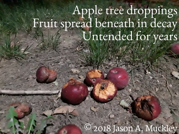 September 16, 2018 Jason A. Muckley Untended #Haiku #Poetry Apple tree droppingsFruit spread beneath in decayUntended for years © 2018 Jason A. Muckley Share this: Click to share on X (Opens in new window) X Click to share on Facebook (Opens in new window) Facebook Click to share on Reddit (Opens in new window) Reddit Click to share on Pinterest (Opens in new window) Pinterest Click to email a link to a friend (Opens in new window) Email More Click to share on Tumblr (Opens in new window) Tumblr Like Loading... Related