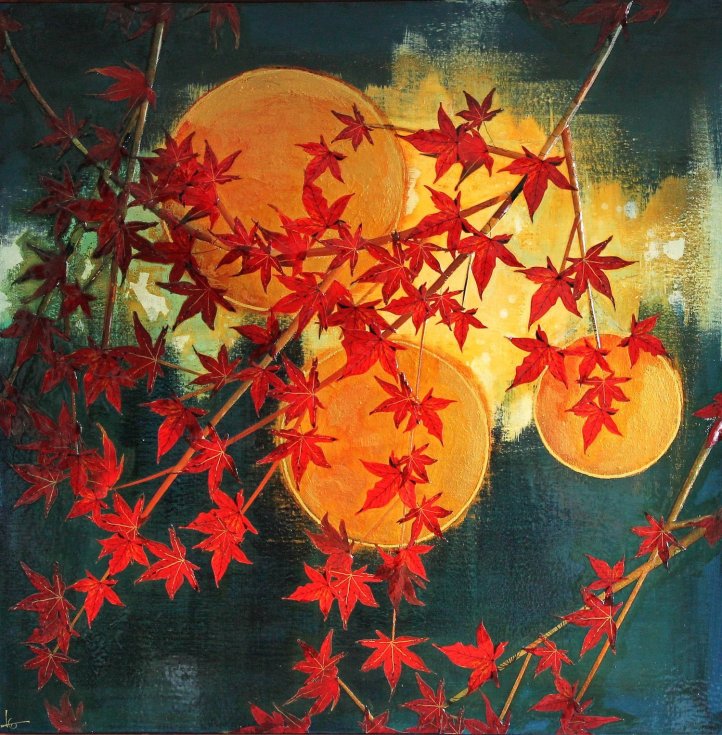 Response to #PoemTrail post prompt of Lilly Greenwood’s beautiful picture above and words: moon, red maple, and Autumn.