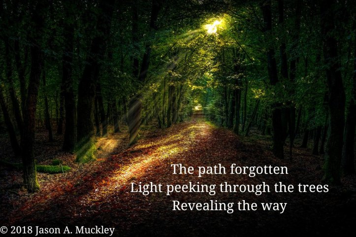 September 24, 2018September 22, 2018 Jason A. Muckley Revealing the Way #CollomLune #Poetry The path forgotten Light peeking through the trees Revealing the way © 2018 Jason A. Muckley Share this: Click to share on X (Opens in new window) X Click to share on Facebook (Opens in new window) Facebook Click to share on Reddit (Opens in new window) Reddit Click to share on Pinterest (Opens in new window) Pinterest Click to email a link to a friend (Opens in new window) Email More Click to share on Tumblr (Opens in new window) Tumblr Like Loading... Related