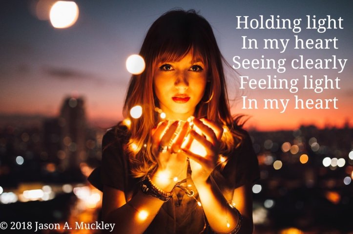 October 6, 2018 Jason A. Muckley Light in My Heart #Poetry #Imagery #AmWriting Holding lightIn my heartSeeing clearlyFeeling lightIn my heart © 2018 Jason A. Muckley Share this: Click to share on X (Opens in new window) X Click to share on Facebook (Opens in new window) Facebook Click to share on Reddit (Opens in new window) Reddit Click to share on Pinterest (Opens in new window) Pinterest Click to email a link to a friend (Opens in new window) Email More Click to share on Tumblr (Opens in new window) Tumblr Like Loading... Related