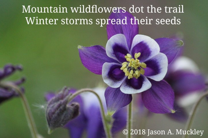 October 8, 2018October 8, 2018 Jason A. Muckley Mountain Wildflowers #Poetry #TenWordStory Mountain wildflowers dot the trail Winter storms spread their seeds © 2018 Jason A. Muckley Share this: Click to share on X (Opens in new window) X Click to share on Facebook (Opens in new window) Facebook Click to share on Reddit (Opens in new window) Reddit Click to share on Pinterest (Opens in new window) Pinterest Click to email a link to a friend (Opens in new window) Email More Click to share on Tumblr (Opens in new window) Tumblr Like Loading... Related