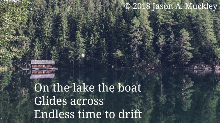 November 15, 2018 Jason A. Muckley On The Lake #Lune #Poetry On the lake the boat Glides across Endless time to drift © 2018 Jason A. Muckley Share this: Click to share on X (Opens in new window) X Click to share on Facebook (Opens in new window) Facebook Click to share on Reddit (Opens in new window) Reddit Click to share on Pinterest (Opens in new window) Pinterest Click to email a link to a friend (Opens in new window) Email More Click to share on Tumblr (Opens in new window) Tumblr Like Loading... Related