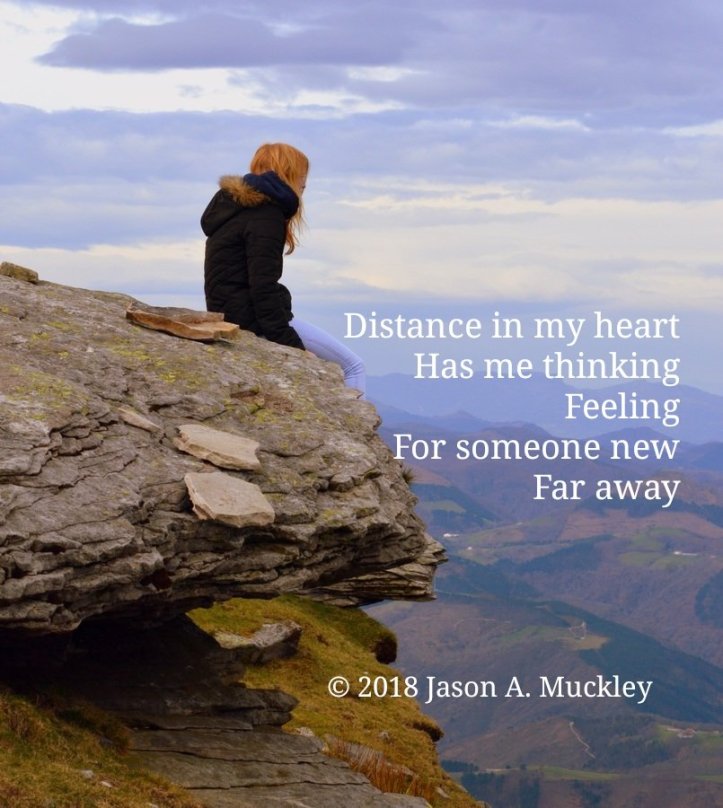 December 10, 2018December 9, 2018 Jason A. Muckley Distance in My Heart #Poetry Distance in my heart Has me thinking Feeling For someone new Far away © 2018 Jason A. Muckley Share this: Click to share on X (Opens in new window) X Click to share on Facebook (Opens in new window) Facebook Click to share on Reddit (Opens in new window) Reddit Click to share on Pinterest (Opens in new window) Pinterest Click to email a link to a friend (Opens in new window) Email More Click to share on Tumblr (Opens in new window) Tumblr Like Loading... Related