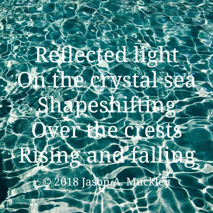 December 10, 2018 Jason A. Muckley Reflecting Light #Gogyohka #Poetry Reflected light On the crystal sea Shapeshifting Over the crests Rising and falling © 2018 Jason A. Muckley Share this: Click to share on X (Opens in new window) X Click to share on Facebook (Opens in new window) Facebook Click to share on Reddit (Opens in new window) Reddit Click to share on Pinterest (Opens in new window) Pinterest Click to email a link to a friend (Opens in new window) Email More Click to share on Tumblr (Opens in new window) Tumblr Like Loading... Related