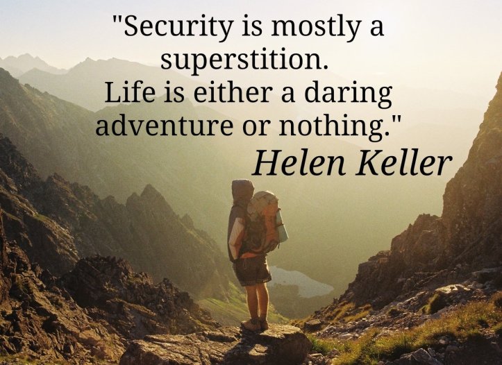 “Security is mostly a superstition. Life is either a daring adventure or nothing.” -Helen Keller