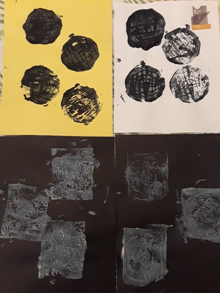 Near the entrance on the ground level there was an interactive exhibit showcasing three imprinting methods that you can try for yourself. Again, without the toddler this would have totally been a fun way to spend some time. Instead we walked through talking to the employee who was assisting patrons about the methods. She showed us each one and the simplest one was a styrofoam sheet where you can make a “print” from engraving a piece of styrofoam with a pen or pencil. This sounded easy and fun. We had homework!