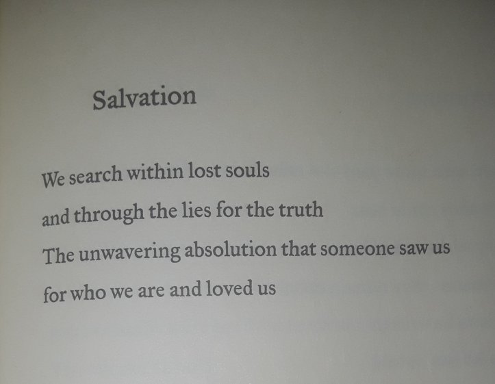for who we are and loved us.” -Samantha King, Salvation from her collection of poetry “Born to Love, Cursed to Feel”