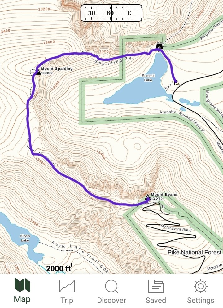 We are getting up around 4am, hoping to be to trailhead by 7am, to make it to the summit by 11am or sooner. Storms here in Colorado start rolling in around noon, and the weather report says that at the summit we are looking to do, it maybe before then.
