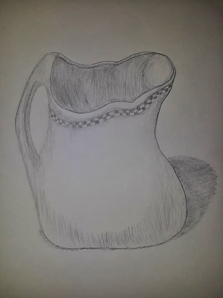 I like the way the pitcher’s shape has movement. Nicely done! I’ve been sketching today, as well. It relaxes me.