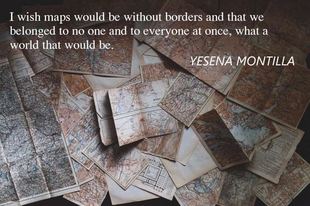 I wish maps would be without borders and that we belonged to no one and to everyone at once, what a world that would be.