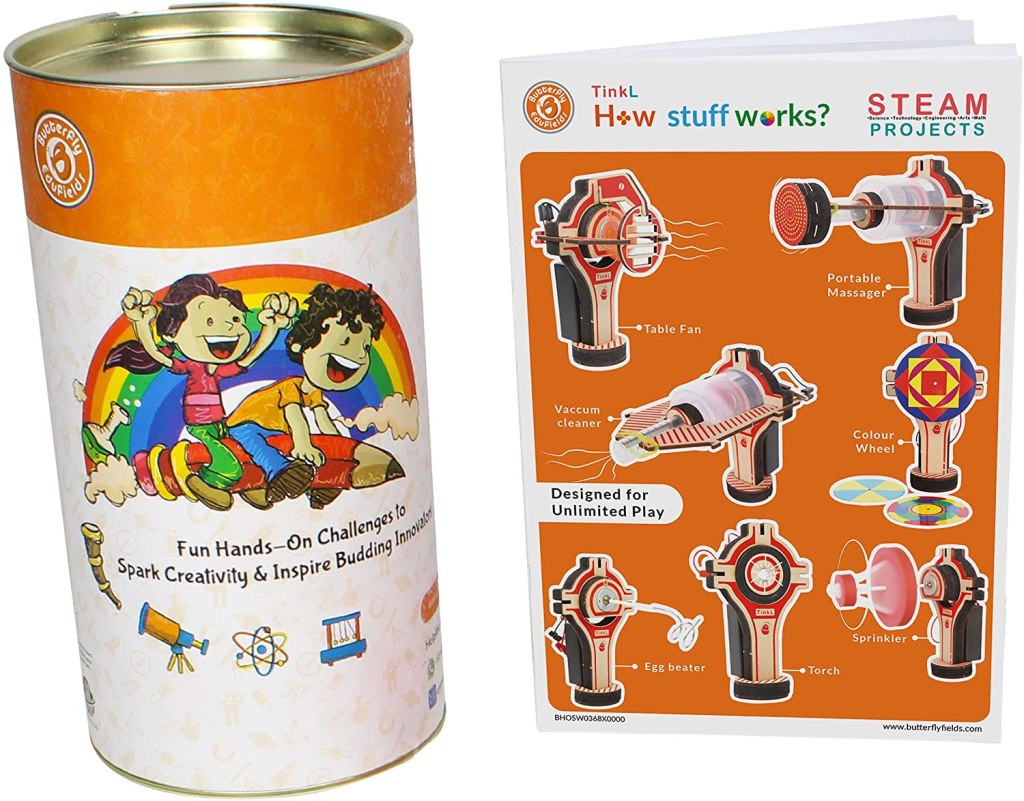 Check out the Butterfly EduFields 7-in-1 Electric Motor Kit – Build Your own Gadget Electronics kit.