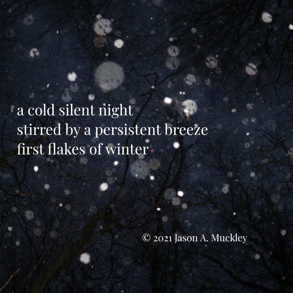 December 9, 2021December 9, 2021 Jason A. Muckley First Flakes #Haiku #Poetry Photo by Dezaldy Irfan on Unsplash a cold silent nightstirred by a persistent breezefirst flakes of winter © 2021 Jason A. Muckley Share this: Click to share on X (Opens in new window) X Click to share on Facebook (Opens in new window) Facebook Click to share on Reddit (Opens in new window) Reddit Click to share on Pinterest (Opens in new window) Pinterest Click to email a link to a friend (Opens in new window) Email More Click to share on Tumblr (Opens in new window) Tumblr Like Loading... Related