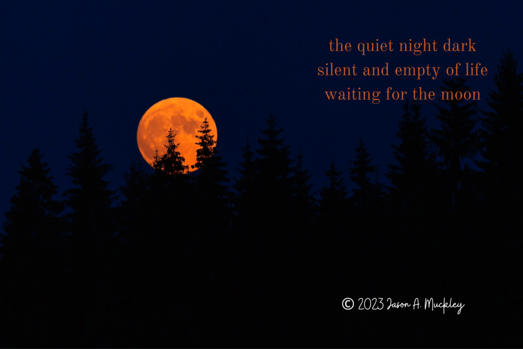 February 18, 2023February 17, 2023 Jason A. Muckley Nocturnal #Haiku #Nature #Poetry Photo by Milos Prelevic on Unsplash the quiet night darksilent and empty of lifewaiting for the moon © 2023 Jason A. Muckley Share this: Click to share on X (Opens in new window) X Click to share on Facebook (Opens in new window) Facebook Click to share on Reddit (Opens in new window) Reddit Click to share on Pinterest (Opens in new window) Pinterest Click to email a link to a friend (Opens in new window) Email More Click to share on Tumblr (Opens in new window) Tumblr Like Loading... Related